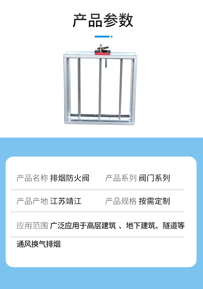 排煙閥安裝在機械排煙系統各支管端部(煙氣吸入口)處,平時呈關閉狀態并滿足漏風量要求,火災或需要排煙時手動和電動打開,起排煙作用的閥門。
