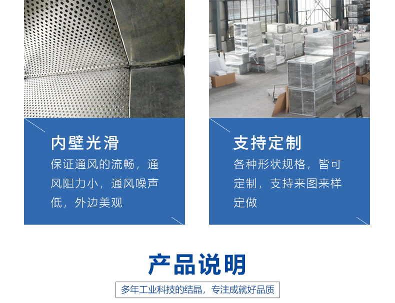 消聲靜壓箱是送風系統減少動壓、增加靜壓、穩定氣流和減少氣流振動的一種必要的配件,它可使送風效果更加理想。靜壓箱是一種既能允許氣流通過,又能有效地阻止或減弱聲能向外傳播的裝置。
